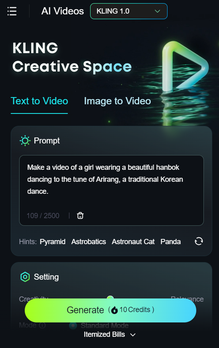 나는 "아름다운 한복을 입은 소녀가 아리랑 노래에 맞춰 한국 전통 춤을 추는 영상을 만들어줘"라고 명령을 했어요.