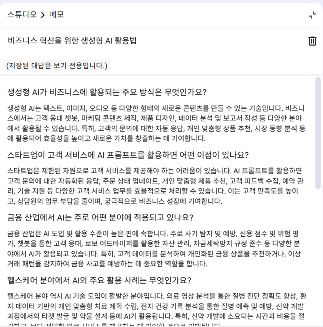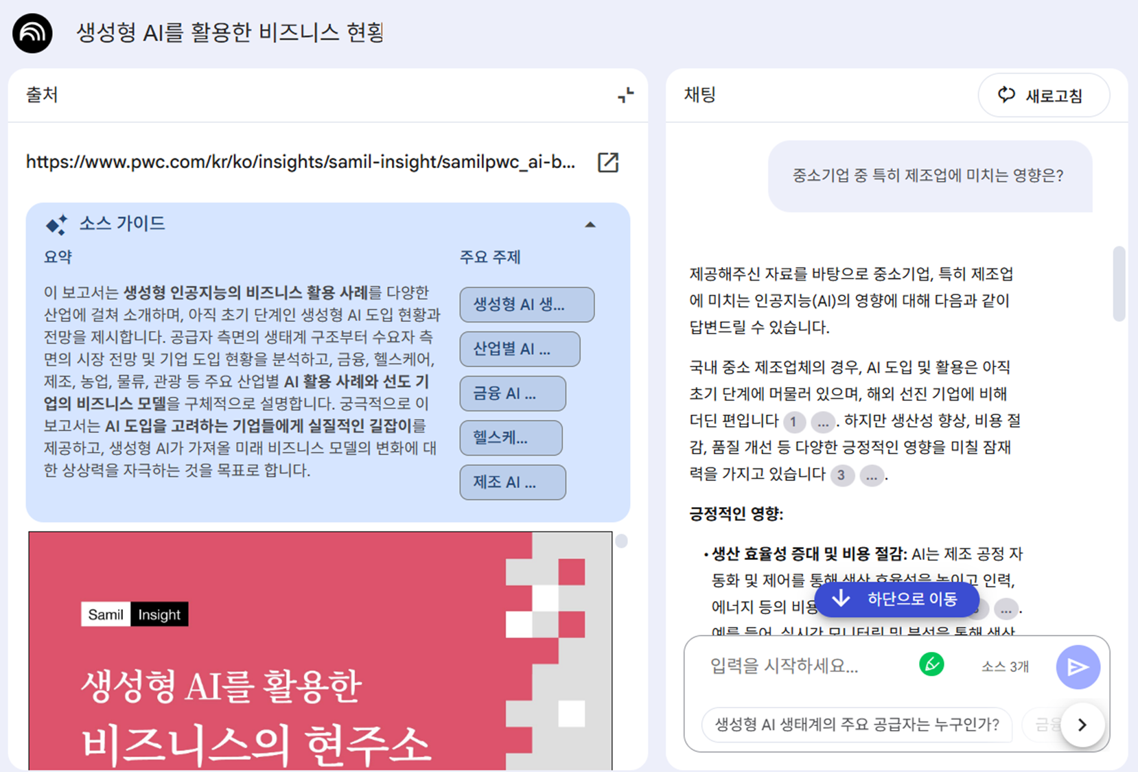 - 링크 기반 자동 Q&A 기능을 활용해 보고서 심화 학습 가능