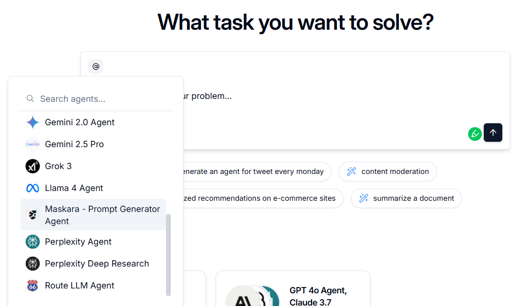 - @ 표시에서 "Maskara - Prompt Generator Agent" 선택