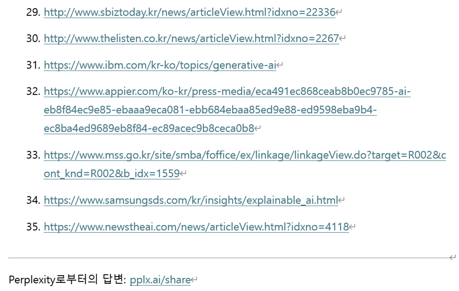 - Perplexity가 생성한 보고서에서 URL을 복사해 노트북에 입력