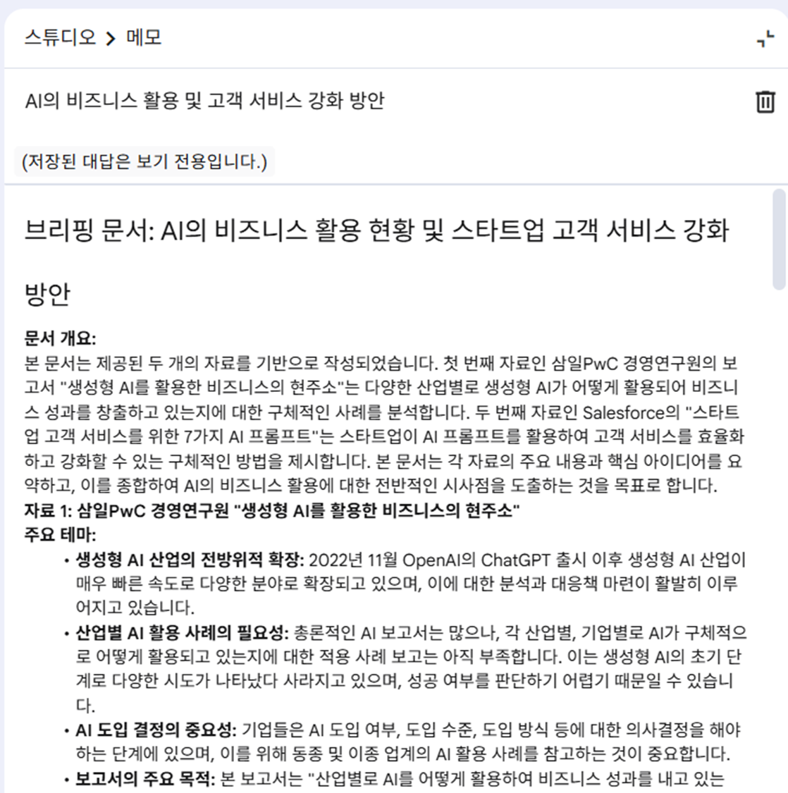 - " 브리핑 문서" 기능 활용할 수 있습니다.